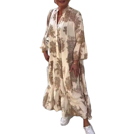 Fransesca ist die perfekte Kombination aus Komfort, Eleganz und bohemian Charme. Dieses luftige Kleid mit dezentem Blumenmuster und voluminösen Ärmeln verleiht dir einen entspannten, aber eleganten Stil – ideal für den Alltag und die Sommeranlässe.