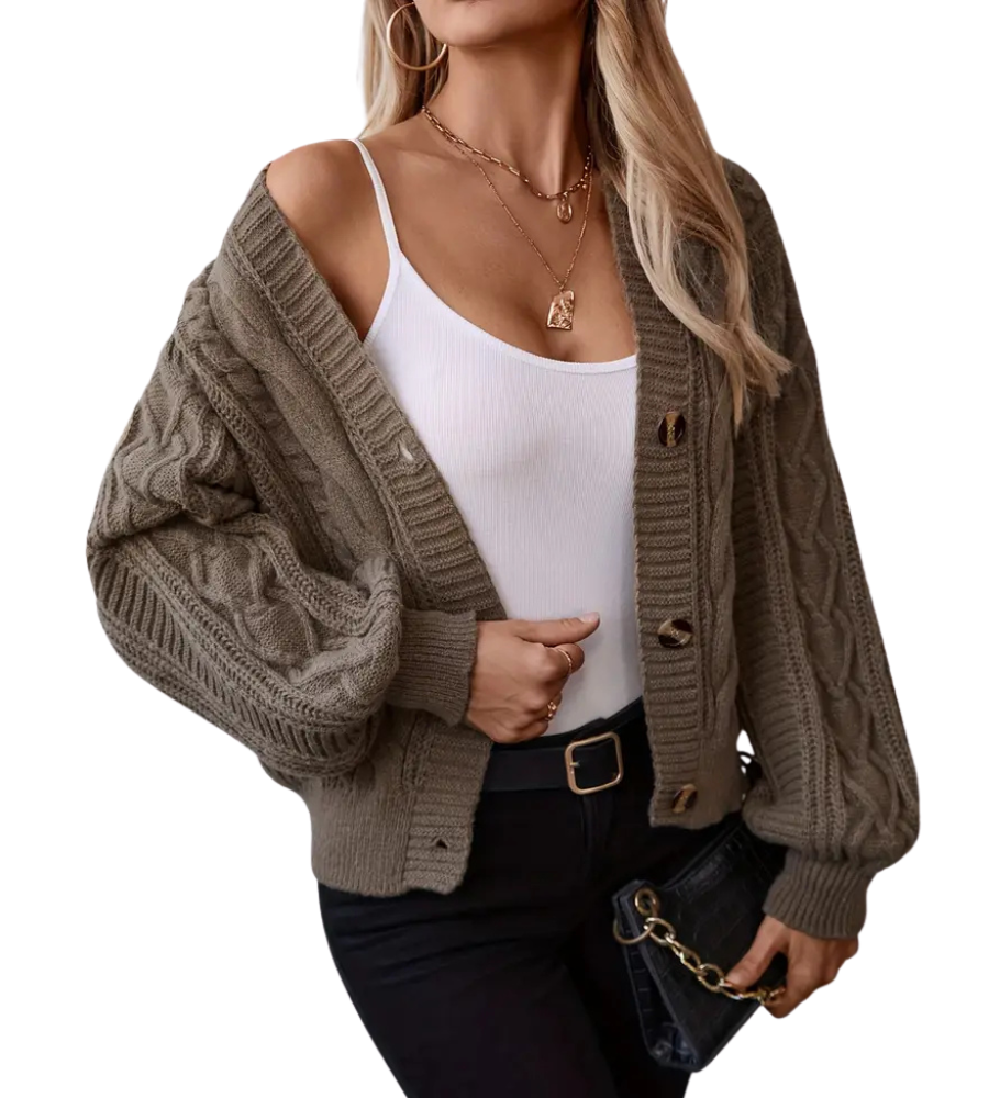 Die lockere Passform macht es einfach, sie zu stylen und angenehm zu tragen, egal ob Sie an kühlen Herbstabenden warm bleiben oder Ihrem Alltagslook eine stilvolle Schicht hinzufügen möchten. Camilla ist der Cardigan, der Ihnen sowohl Komfort als auch Klasse bietet – jedes Mal, wenn Sie ihn anziehen.