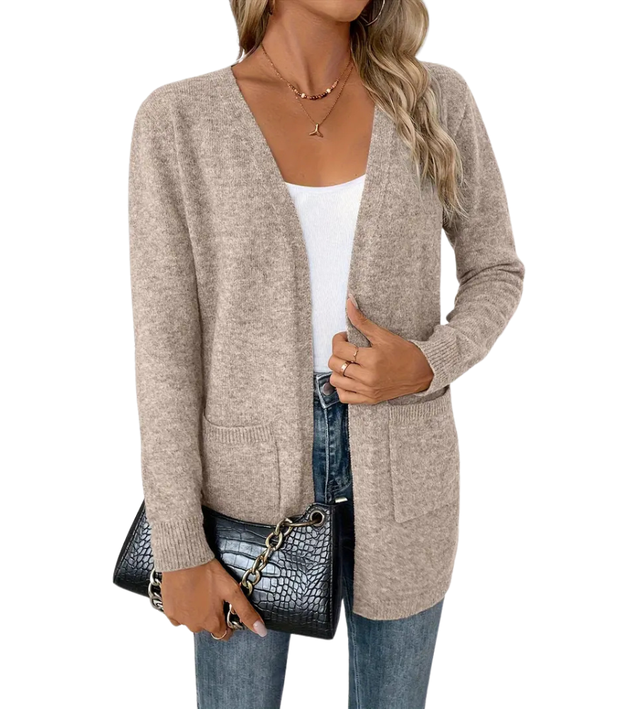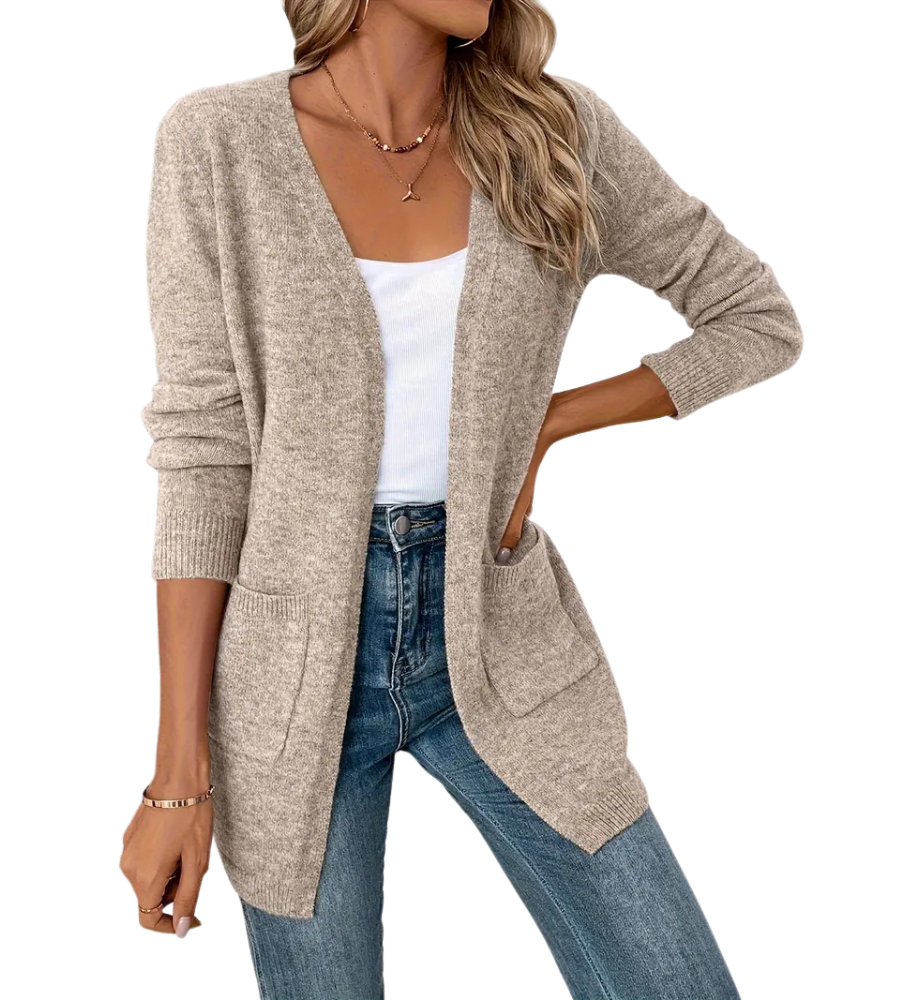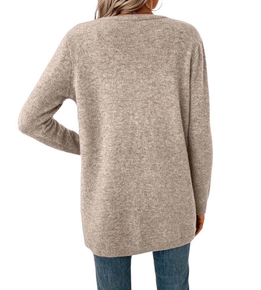Das ist mehr als nur eine Strickjacke. Es ist der treue Begleiter, den Sie immer wieder tragen werden – zu Familienessen, Kaffeetreffs mit Freundinnen oder einem ruhigen Spaziergang, wenn der Herbst kommt.