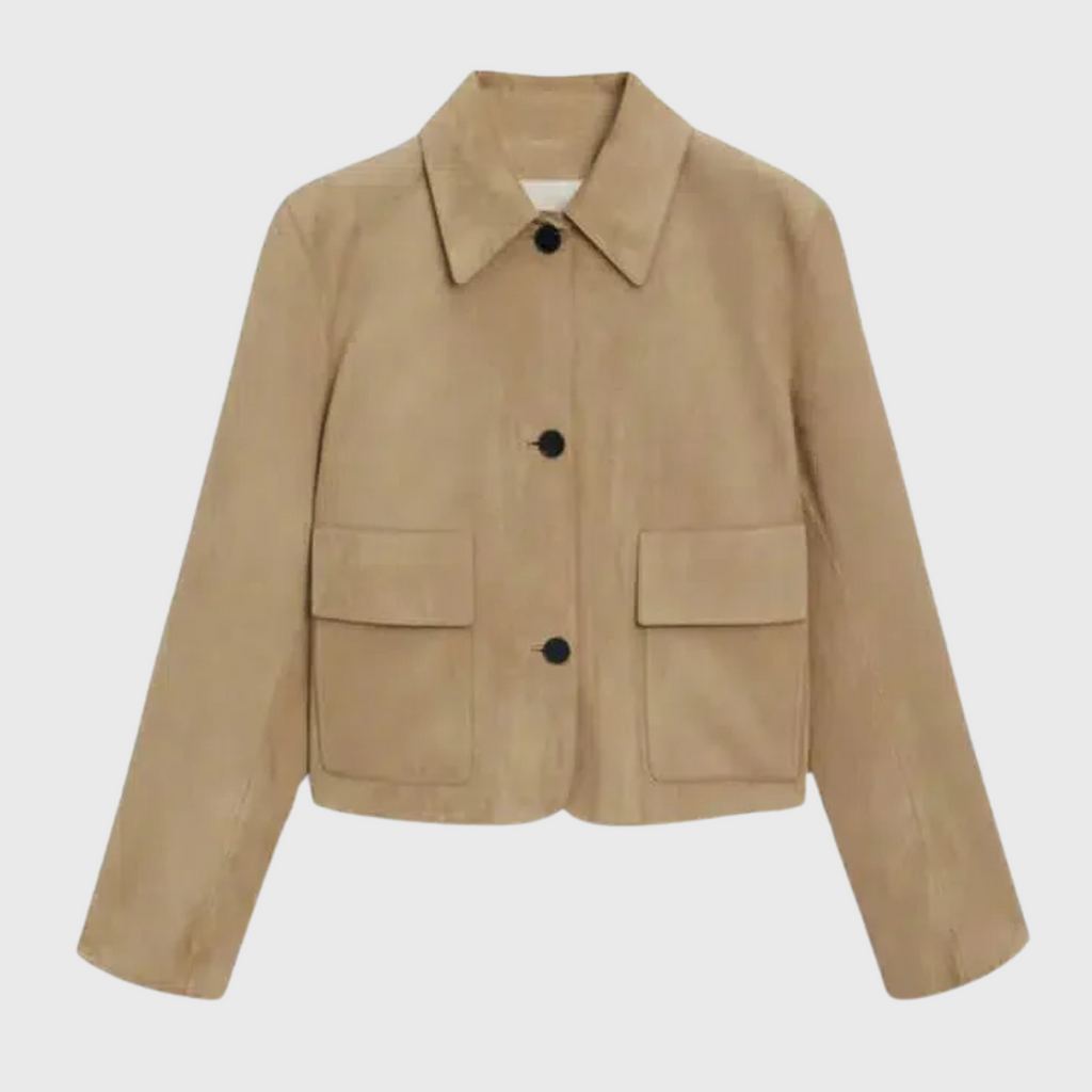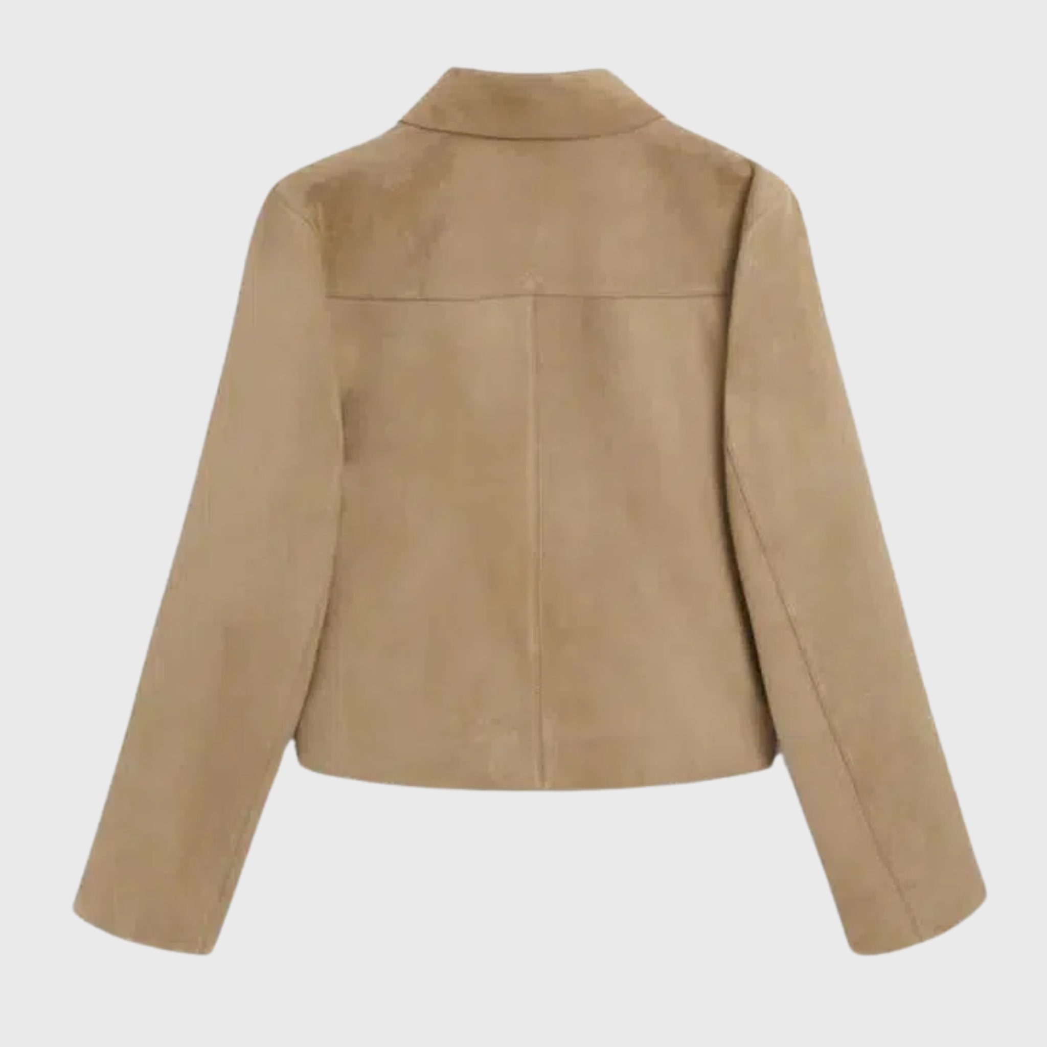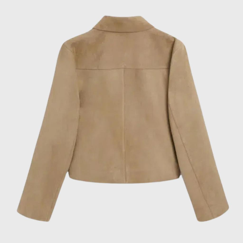 Die Grazia Jacke vereint minimalistisches Design mit luxuriöser Wildleder-Optik. Der lockere Schnitt sorgt für mühelosen Chic, während das hochwertige, vegane Material für ein edles Finish und angenehmen Tragekomfort steht. Perfekt für stilvolle Layering-Looks – egal ob casual oder elegant kombiniert.