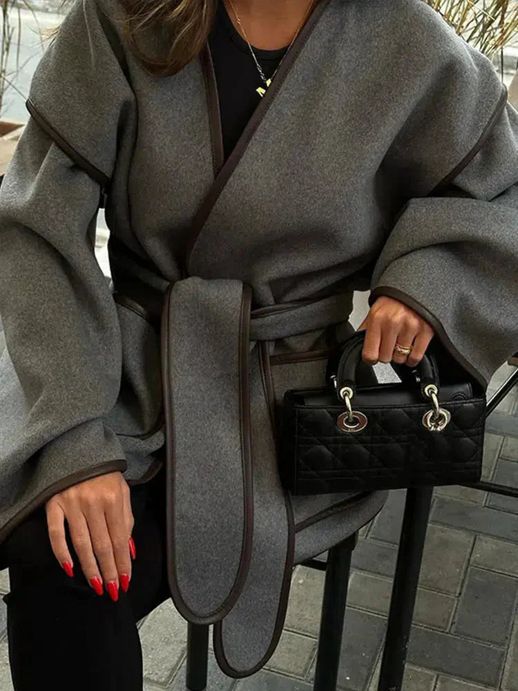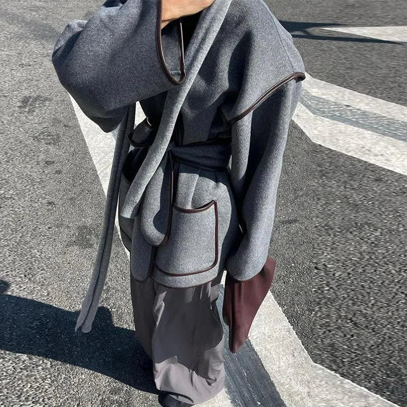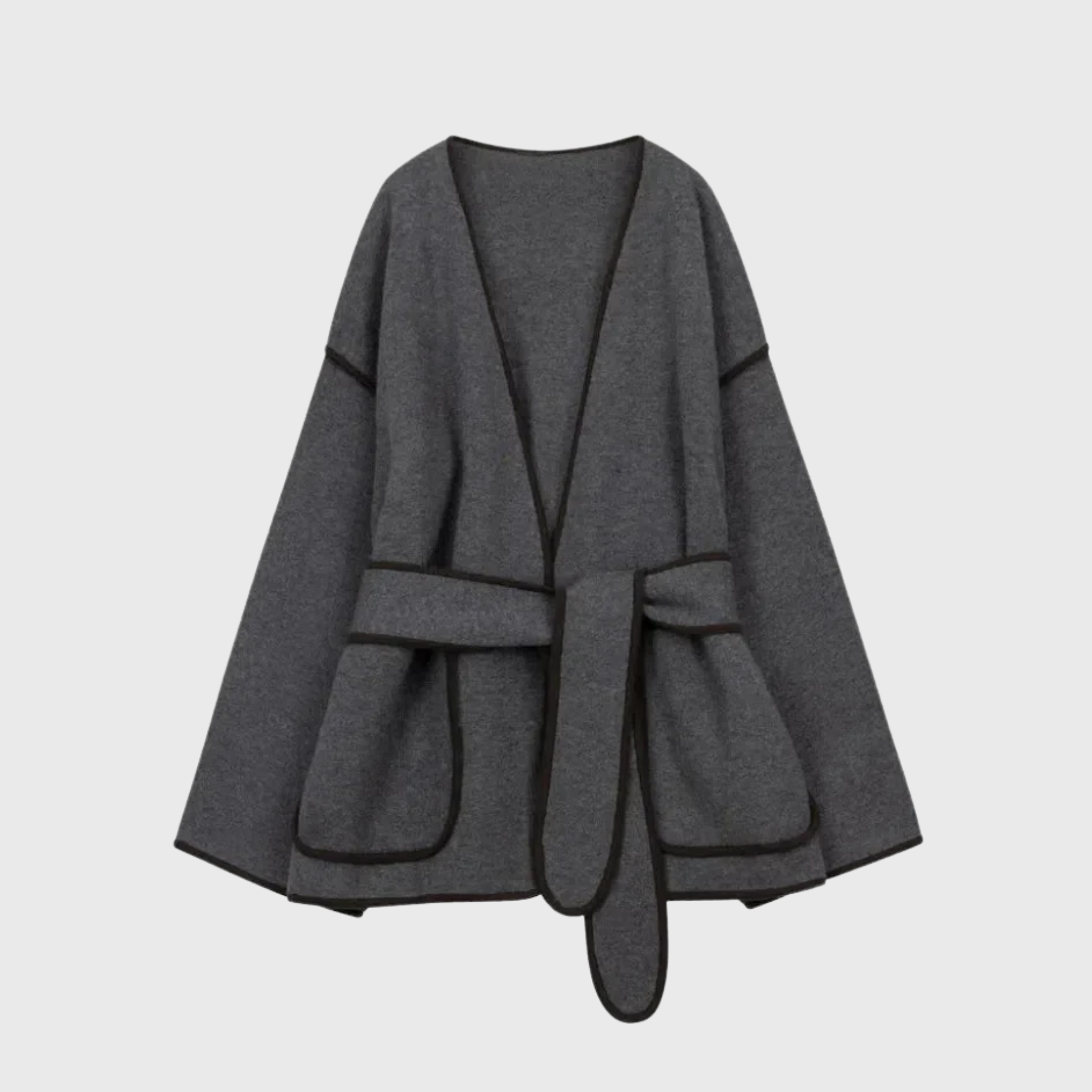 Ysolde | Eleganter Cape-Mantel mit Bindegürtel